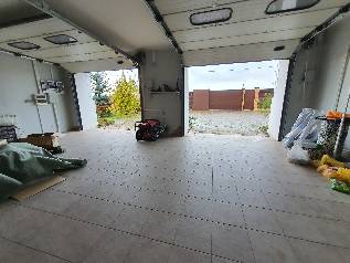 Гараж с двумя дистанционно управляемыми воротами встроен в коттедж. Есть вход в гараж из